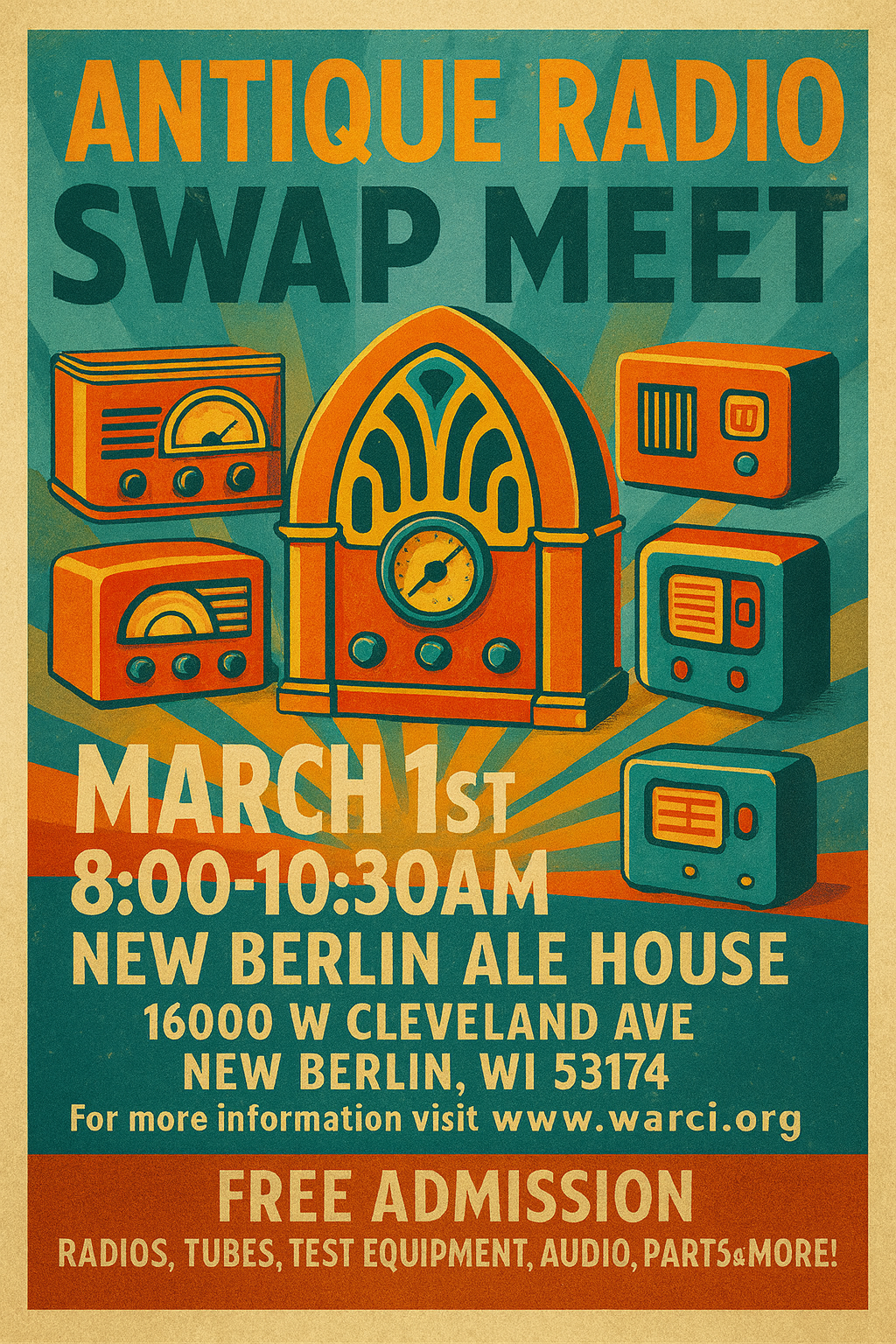 WARCI’s first swap meet of 2026 is coming soon to New Berlin! The general public is always welcome, and admission is free!